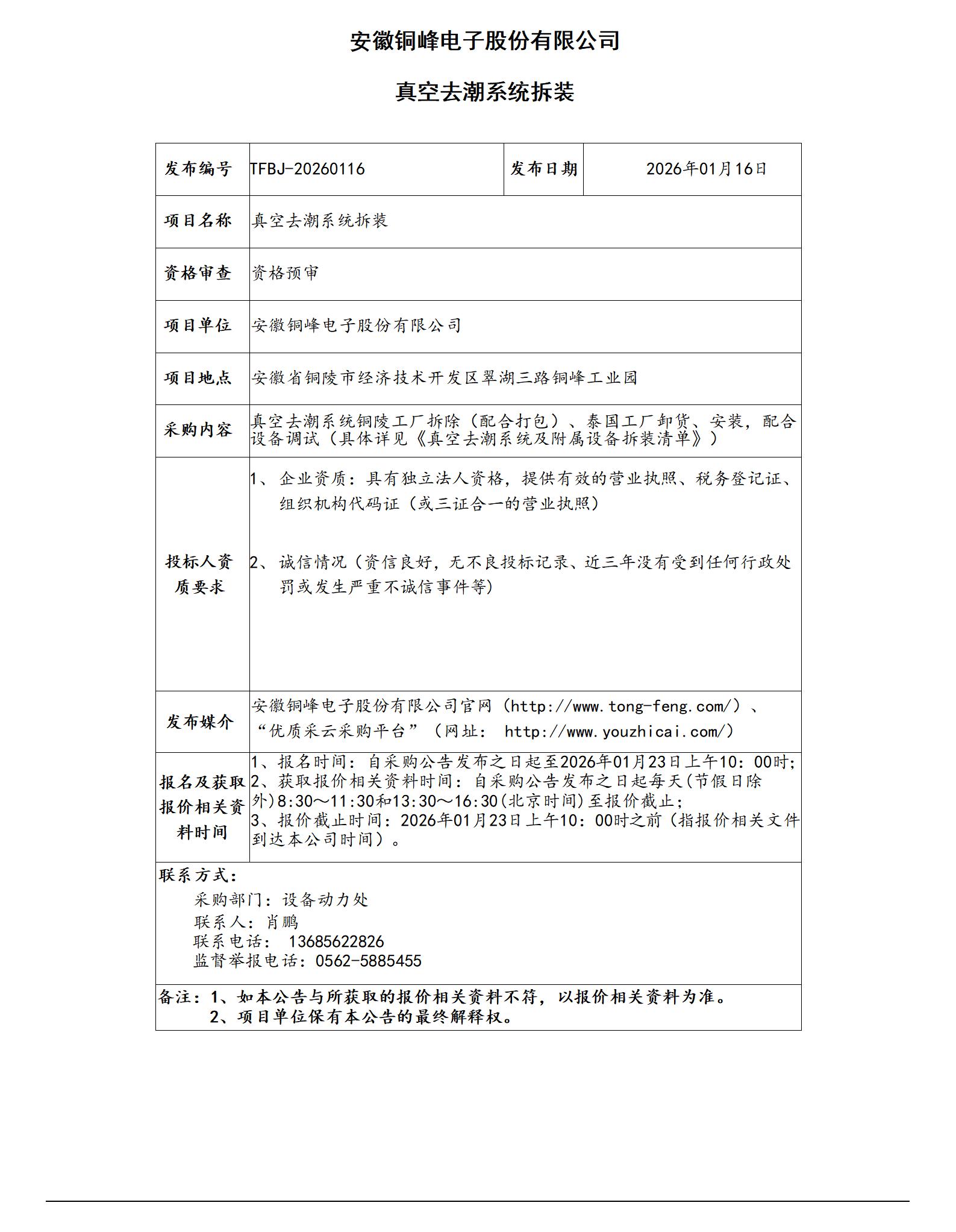 01安徽銅峰電子股份有限公司 (電力電子分公司T5棟廠房吊頂工程 招標(biāo)公告)_01